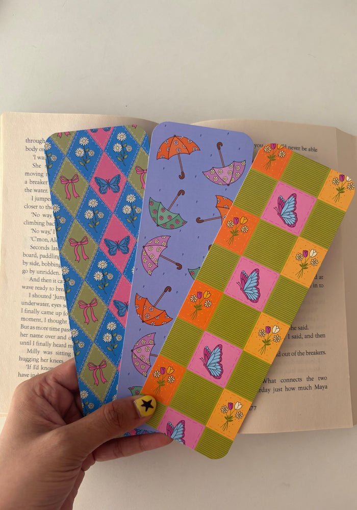Spring Floral Pattern bookmark, Spring butterfly pattern bookmark, spring Umbrellas bookmark