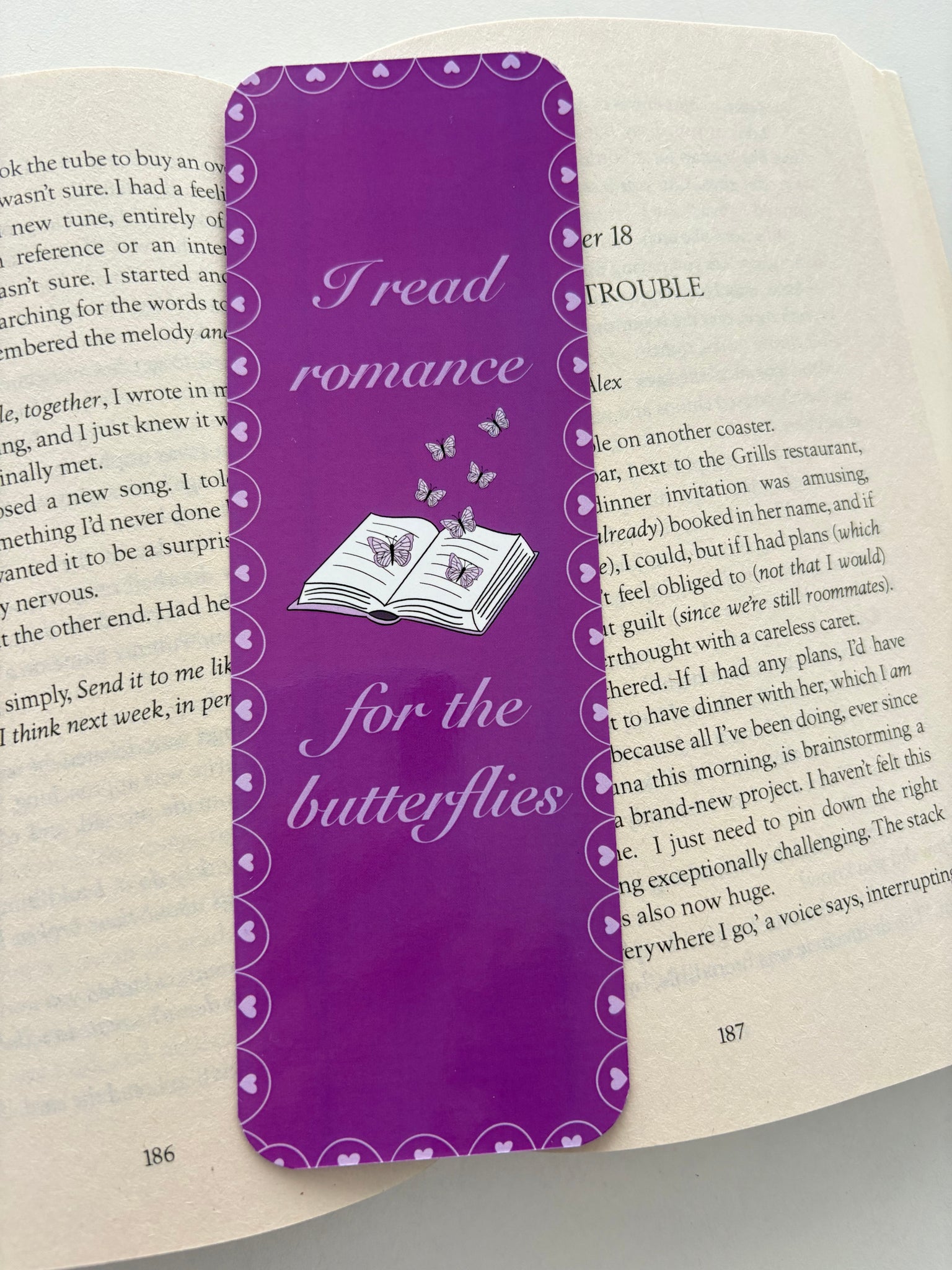 • I swoon for men written by women bookmark, Romance is my comfort genre bookmark, Read romance for the butterflies bookmark